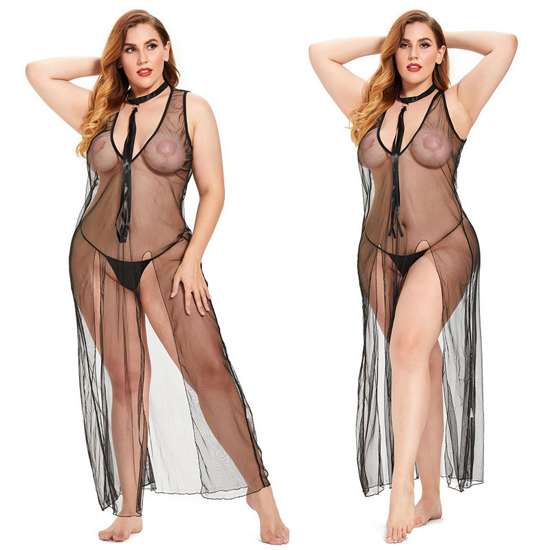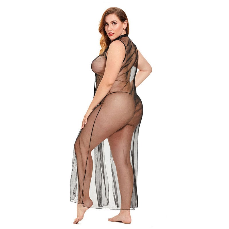 Sexy Plus Size Sheer Thin Mesh Babydoll Nightgown See Through Side Slit Wedding Bathrobe Gown Lingerie Robe Maxi Nightdress