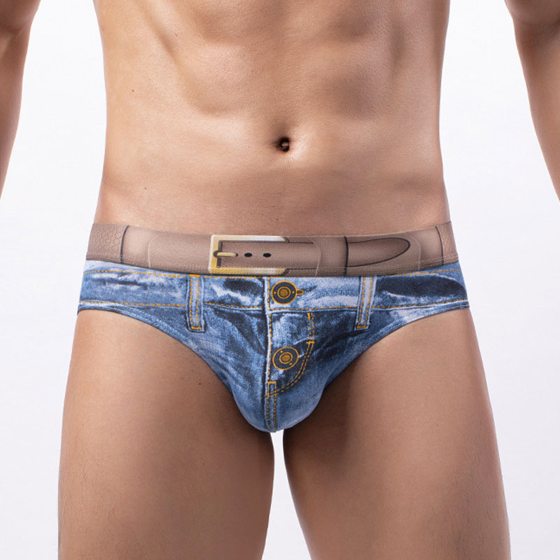 Sexy Denim Printed Briefs Cotton Briefs Convex Underpants Lingerie Panties Men's Underwear