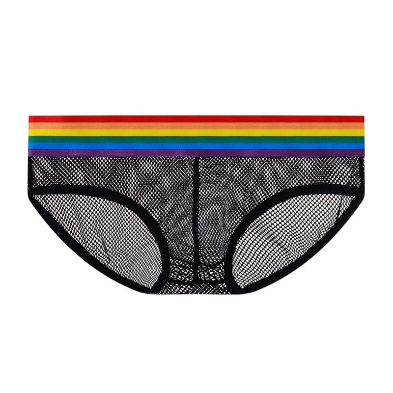 Sexy Fishnet Hollow Mesh Thong Underpants Panties Mens G-String Lingerie Briefs Rainbow Waistband Underwear