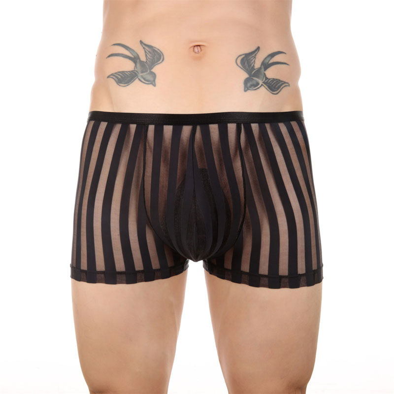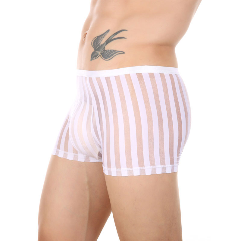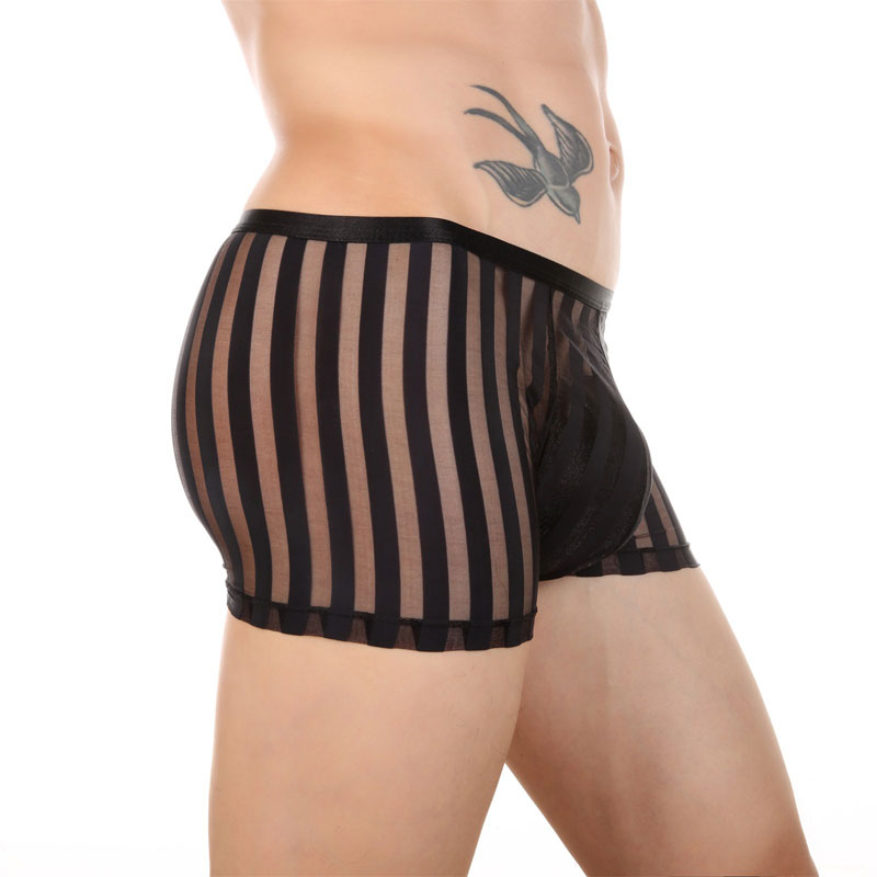 Sexy See Through Elastic Underwear Crossdress Breathable Lingerie Men's Underpants Striped Mesh Boxer Briefs