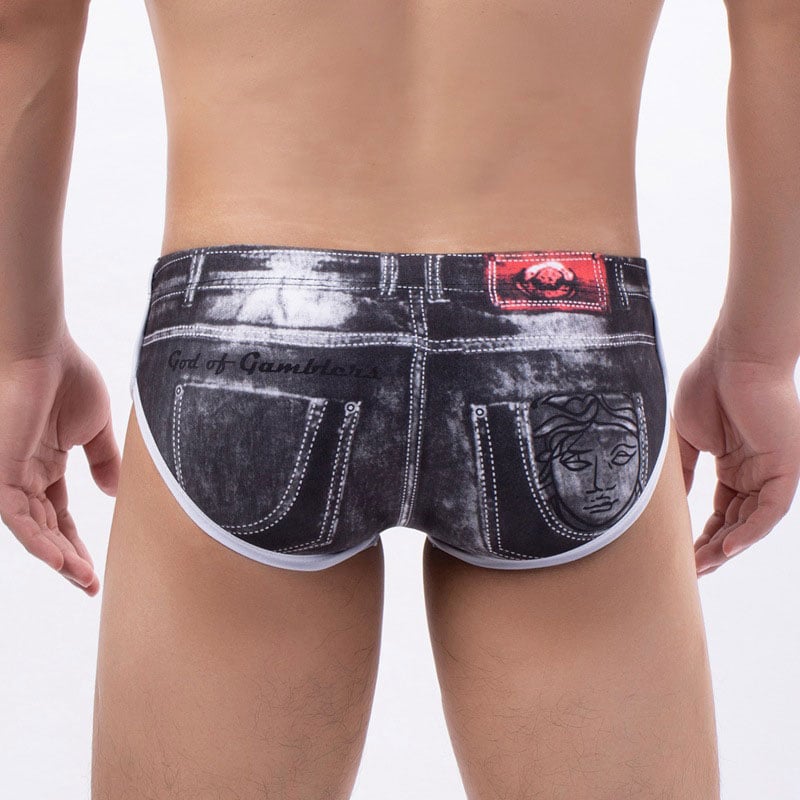 Sexy Denim Printing Bikinis G-String Elastic Underwear Underpants Lingerie Men's Briefs Thong Panties