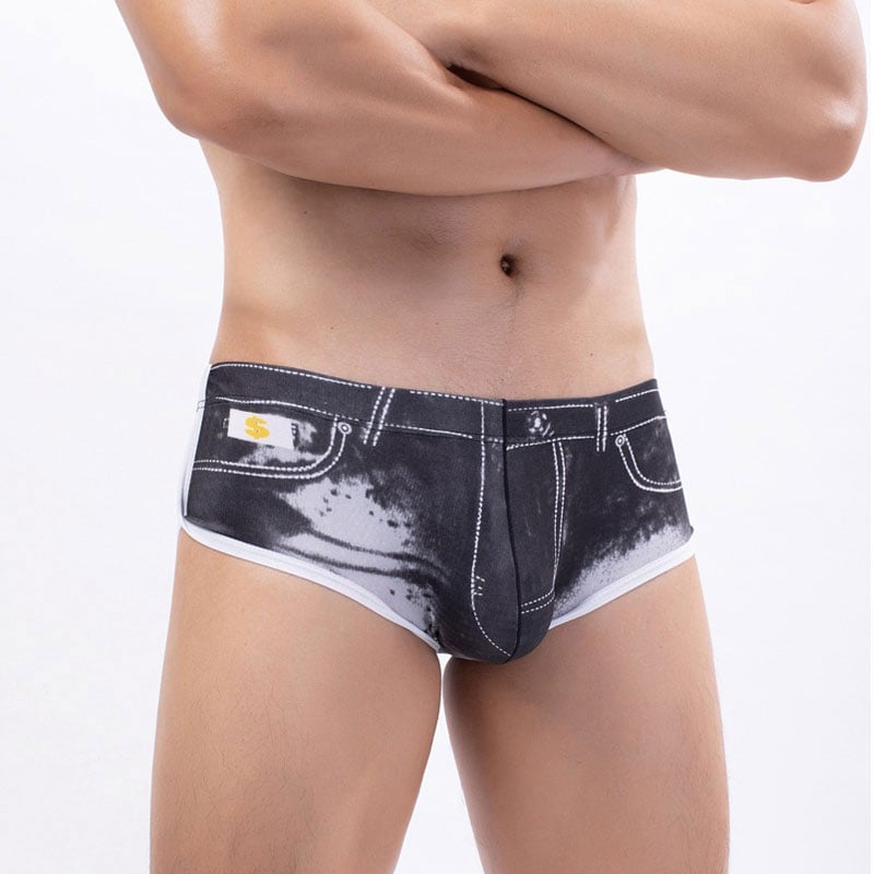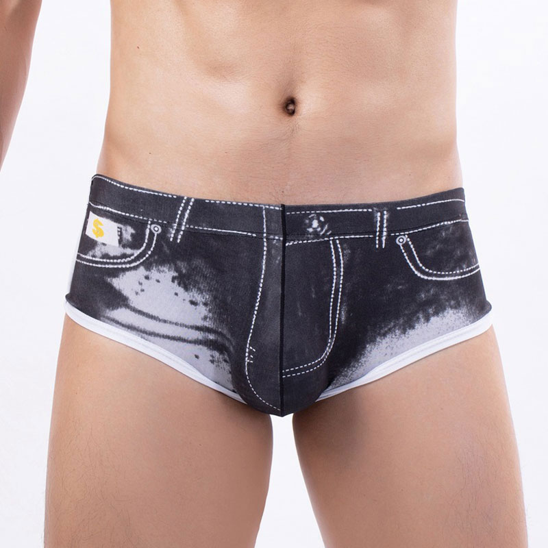 Sexy mens Denim Printing outfit lingerie is ultra thin,no trace,mesh boxer briefs definitely keeps everything where it's supposed to be.Suit for daily wear,more healthier and comfortable.