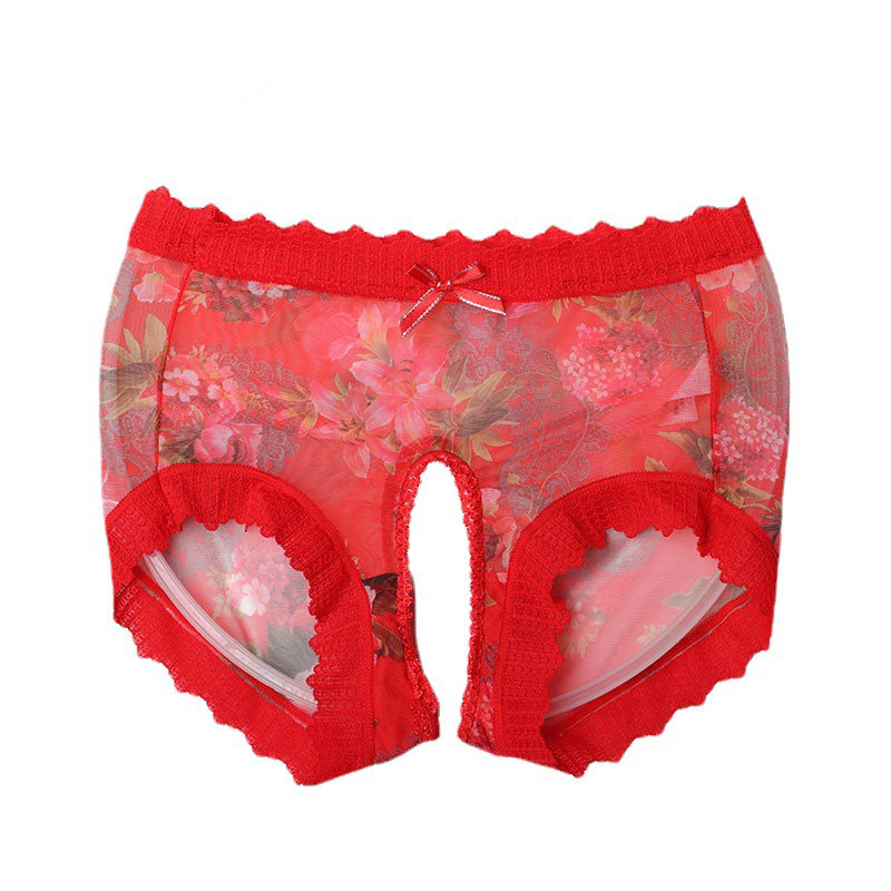 Sexy Flower Mesh Crotchless Stretch Thong Underwear Boxer Briefs See Through Lingerie