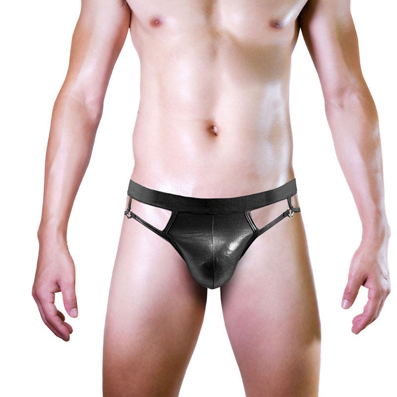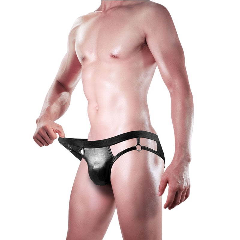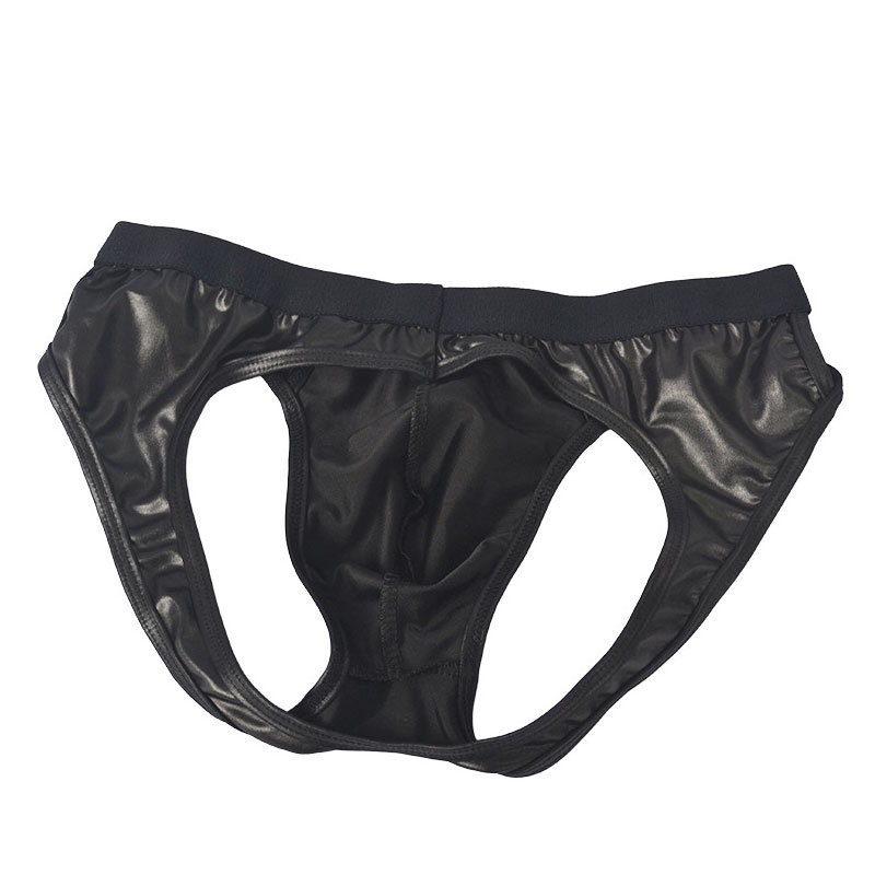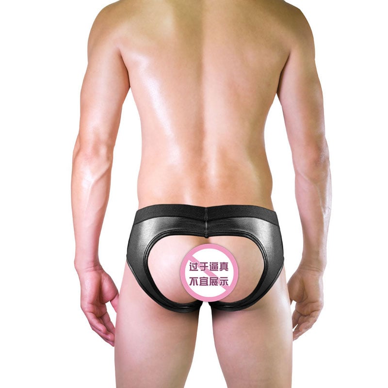 Sexy Faux Leather Backless Hollow Panties Lingerie T-back Briefs Men's Underpants G-string Thong Trunks Underwear