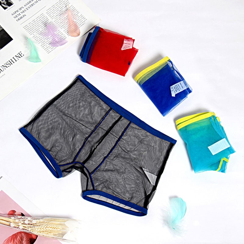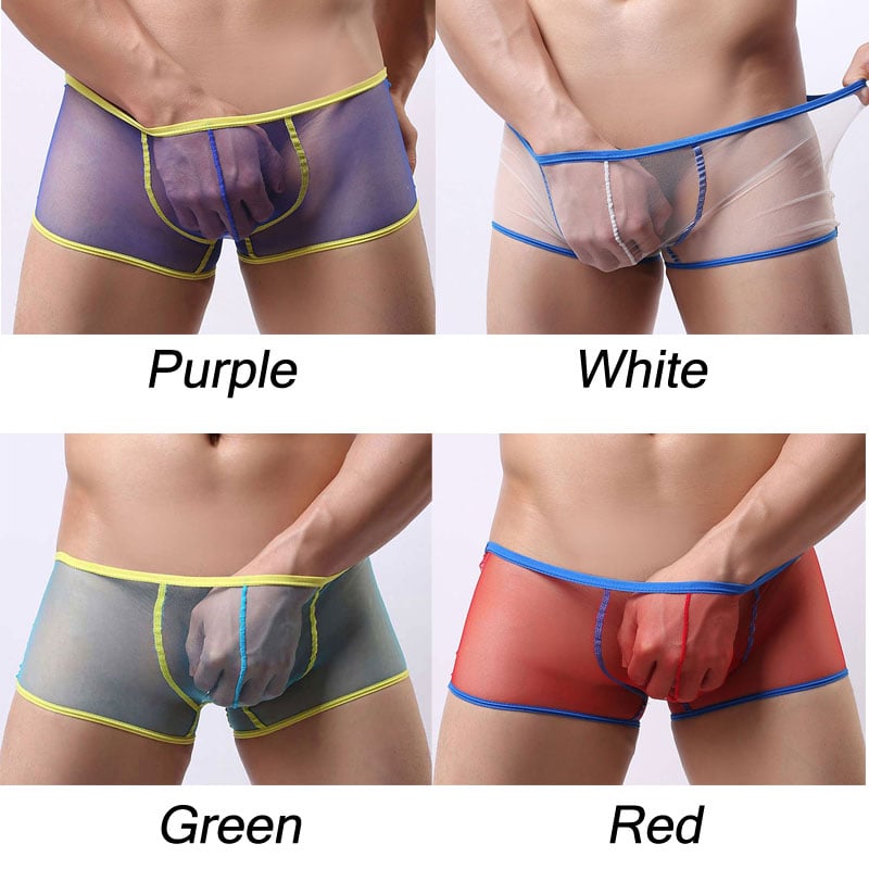 Sexy mens outfit lingerie is ultra thin,no trace,mesh boxer briefs definitely keeps everything where it's supposed to be.Suit for daily wear,more healthier and comfortable.