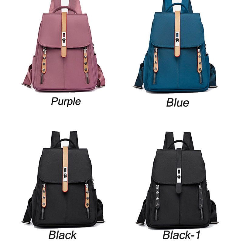 Leisure Vertical Zipper Anti-theft Lock Rivet Waterproof Oxford Bag For Women College Backpack