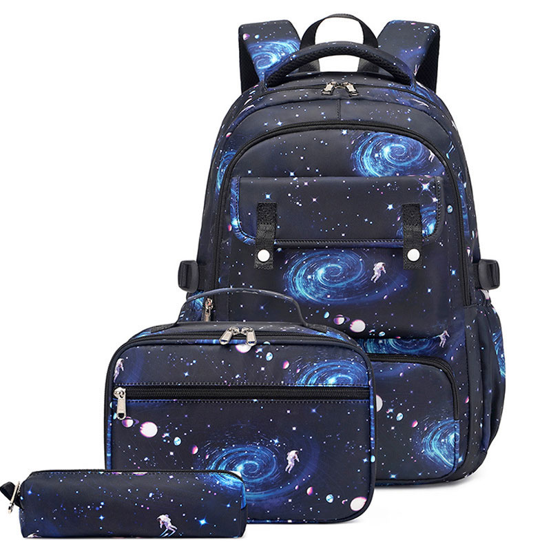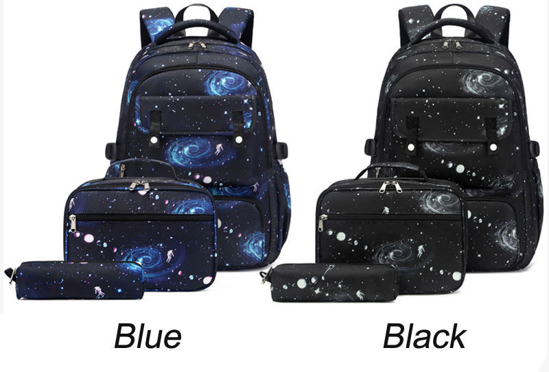 Universe Galaxy Star Print Waterproof Plus Size 15.6 Inches Laptop Rucksack With Lunch Bag Pencil Bag 3 Piece Set Daypack Student School Backpack