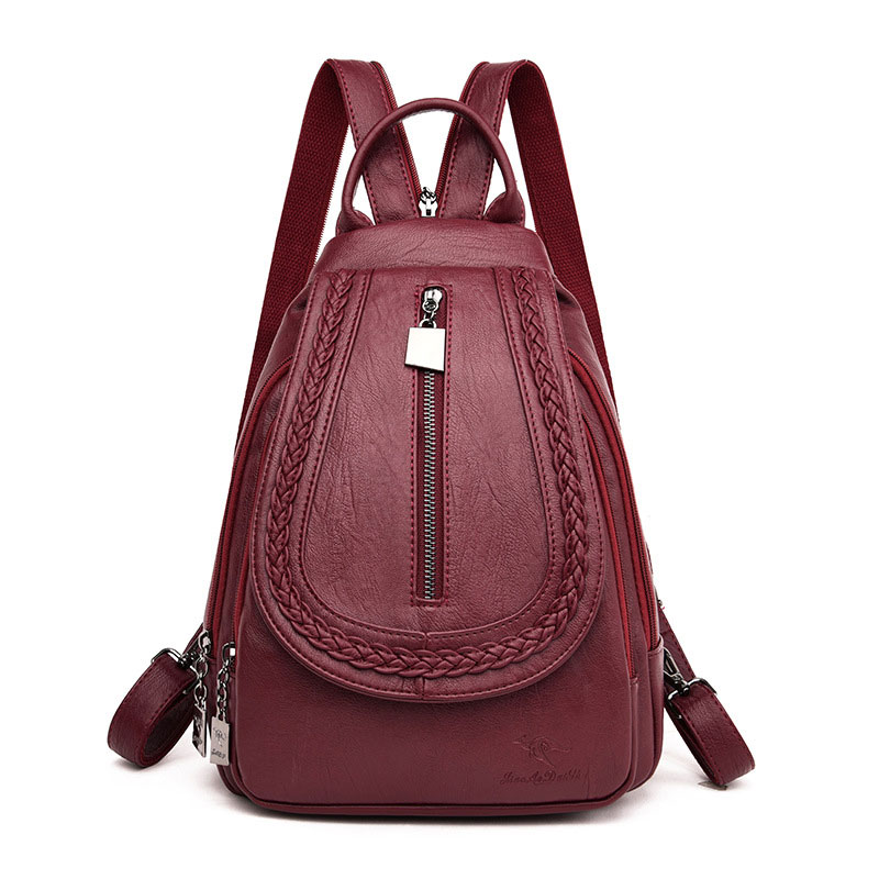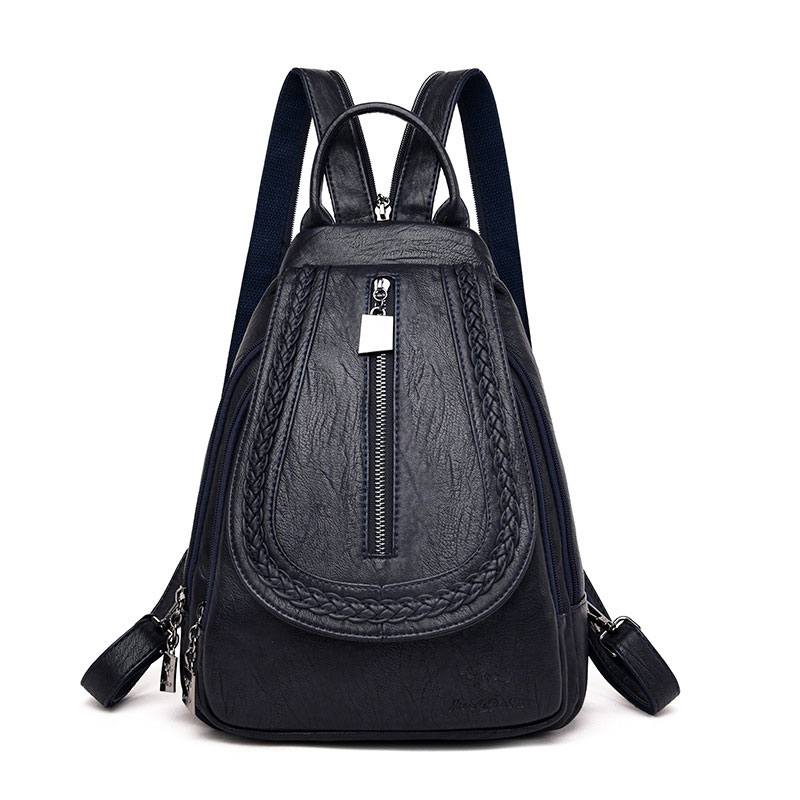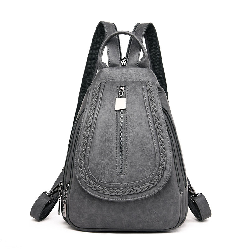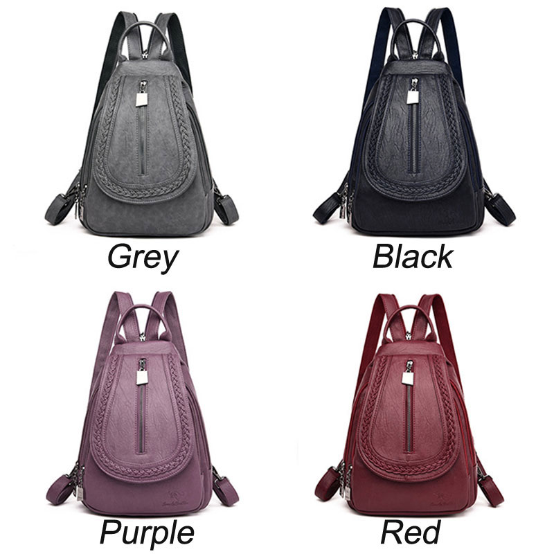 Casual Weave Vertical Zipper Multi-functional Satchel Bags Casual Daypack Work PU Leather Women's Backpack