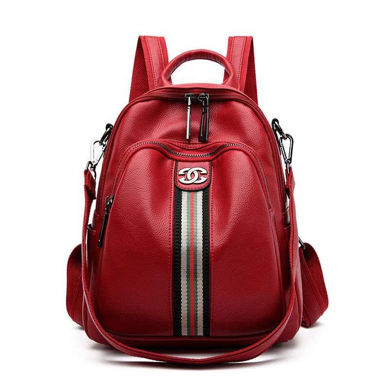 Casual Multipurpose Stripe Satchel Bags Daypack Nurse Bag Work Soft PU Leather College Women's Backpack