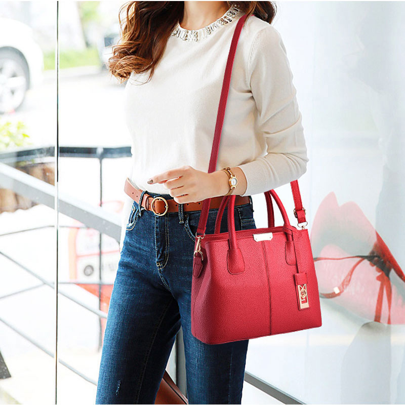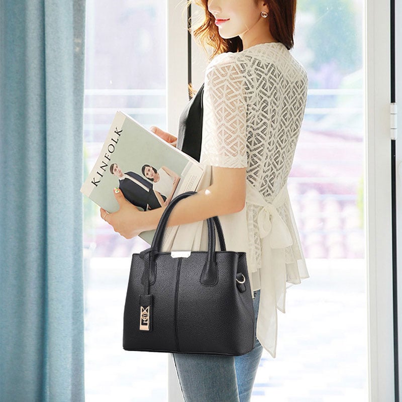 Simple Soft PU Leather Handle Handbags Satchel Bags Tote Messenger Bag For Mom Shopping Shoulder Bags Crossbody Bag